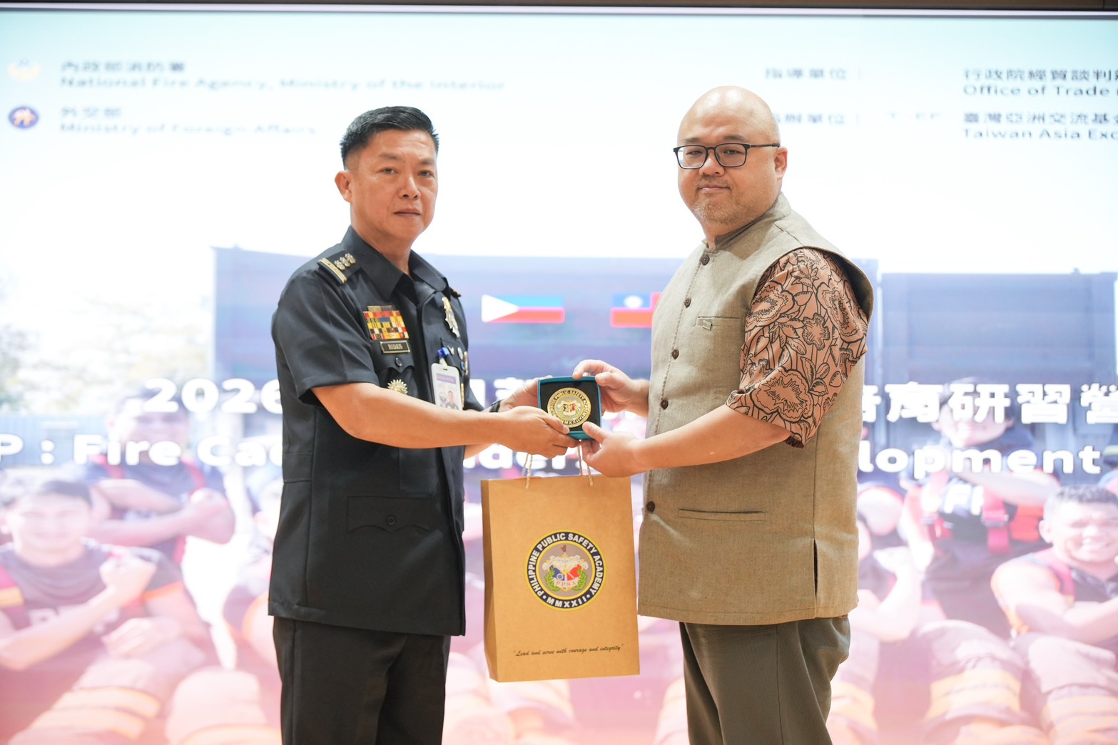 The ceremony concluded with an exchange of commemorative gifts among organizers and partner institutions, symbolizing deepening trust and friendship. The training program will include practical modules on fire suppression, traffic accident rescue, and rope rescue operations. On April 22, participants will travel to Taipei to attend the Disaster Prevention Summit and Fire Expo, featuring demonstrations of Japanese firefighting equipment. On April 23, sessions will include an introduction to the Tokyo Fire Department system and discussions on fire safety management strategies. Through the combined platforms of training, forums, and exhibitions, the program aims to further strengthen trilateral cooperation and exchange in disaster preparedness among Taiwan, Japan, and the Philippines.